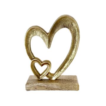 Декор на дерев'яній підставці алюмінієве шампань Серце 17х12,5 см