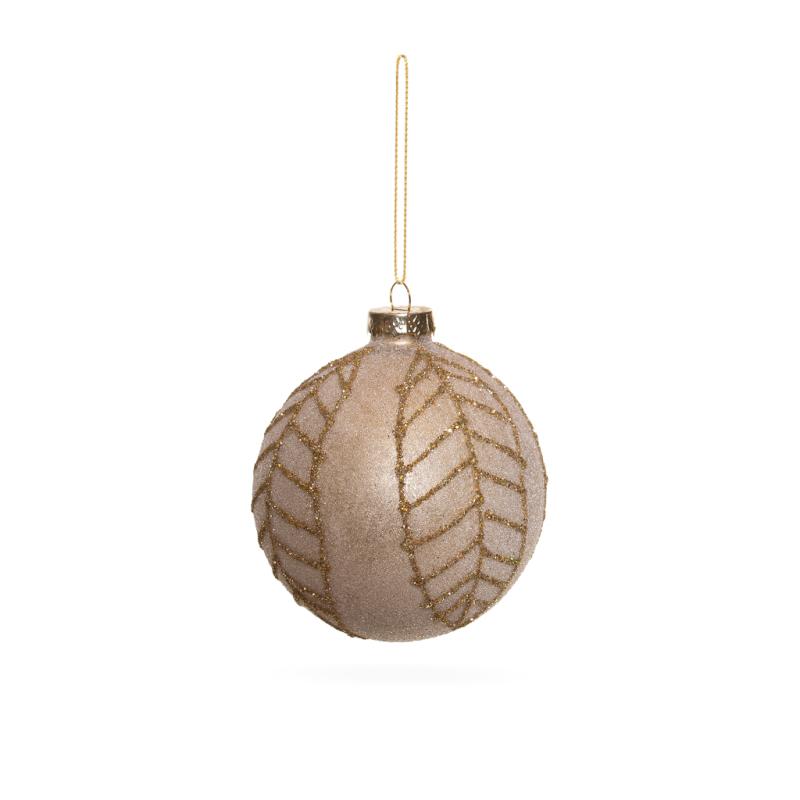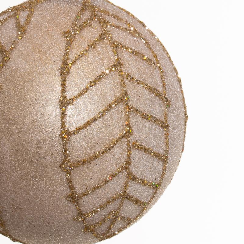 Опис Ялинкова іграшка Куля золоте листя шампань 8 см