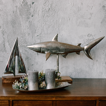 Силует хижої риби актуальний в чоловічому інтер'єрі кімнати. Об'ємна фігурка як характерна деталь радує око керівника високого рангу. На столі або полиці «Акула» з першого погляду викликає повагу до її господаря.