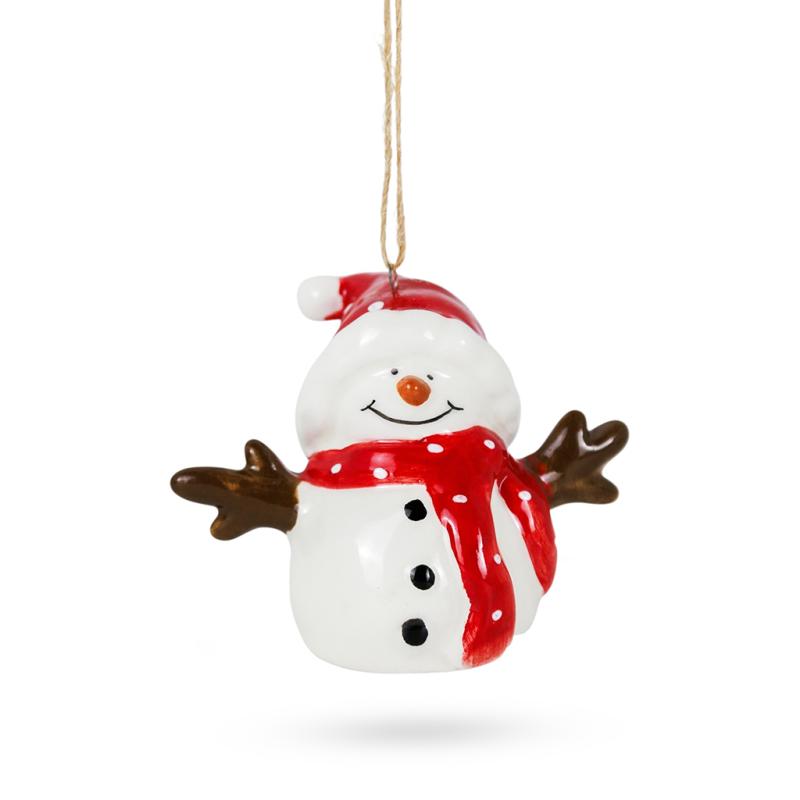 Опис Фігурка кераміка Сніговик у червоній шапочці 5,8см