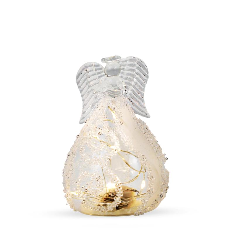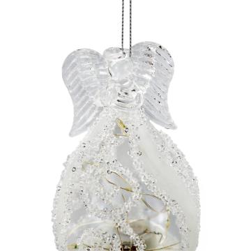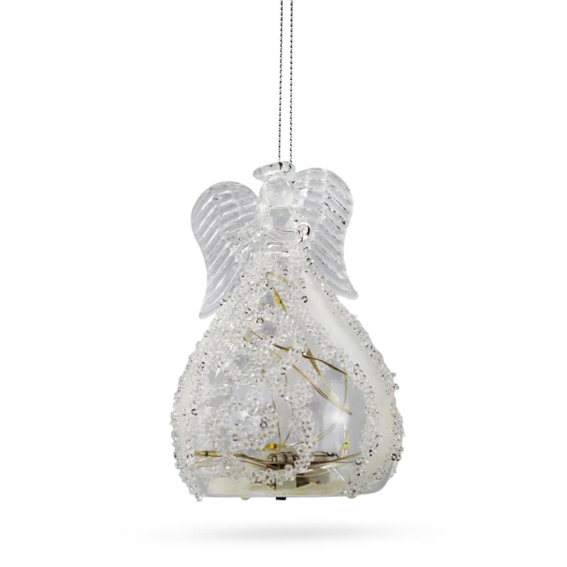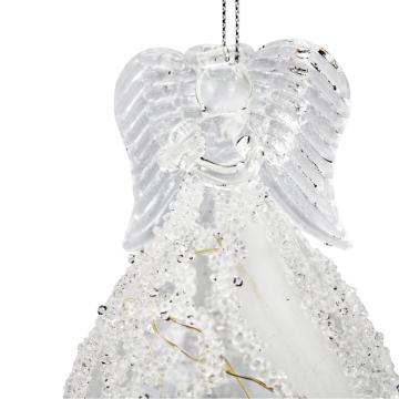 Опис Фігурка Ангел з LED підсвічуванням прозорий з білим бісером 10,5 см