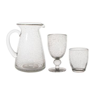 Лите скло з потовщеними стінками виглядає добротно та якісно. Щільність матеріалу гарантує підвищену зносостійкість. Графін «Waterfall» виготовлений вручну та оформлений сотнями мініатюрних бульбашок, що плавають усередині скла та утворюють унікальні візерунки та оптичні ефекти. Шви на посуді свідчать про виробничу особливість.