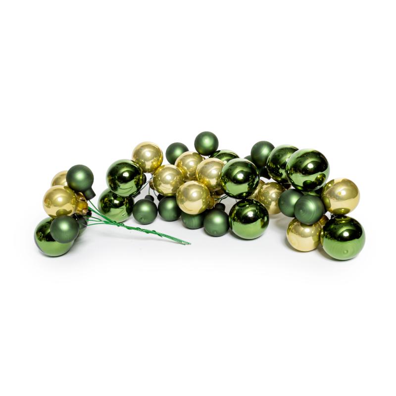 Додайте до свого свята трохи чаклунства з набором ялинкових іграшок у вигляді грон зеленого кольору. У наборі ви знайдете 36 унікальних скляних іграшок різних діаметрів (20, 25 та 30 мм) об'їдених у пучки по 6шт. Така прикраса стане яскравим акцентом на ялинці. Незвичайність ялинкових іграшок полягає в їхньому різноманітті — скляні кулі різного розміру та кольору зібрані у готові унікальні композиції. Вони чудово поєднуються з іншими ялинковими прикрасами та додадуть оригінальності вашій ялинці, а також можуть стати ідеальним декором для новорічного вінка та ялинової композиції.