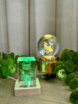 Кришталевий куб на дерев'яній підставці з RGB підсвічуванням Зодіак Телець 4,5х8см