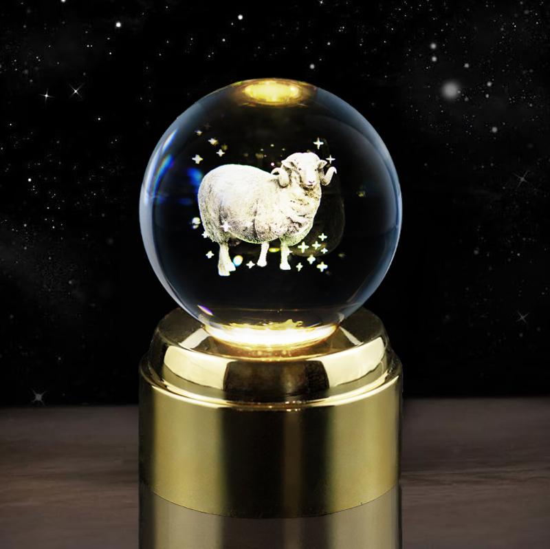 Опис Кришталева куля на 3D платформі з підсвічуванням Зодіак Овен 80мм