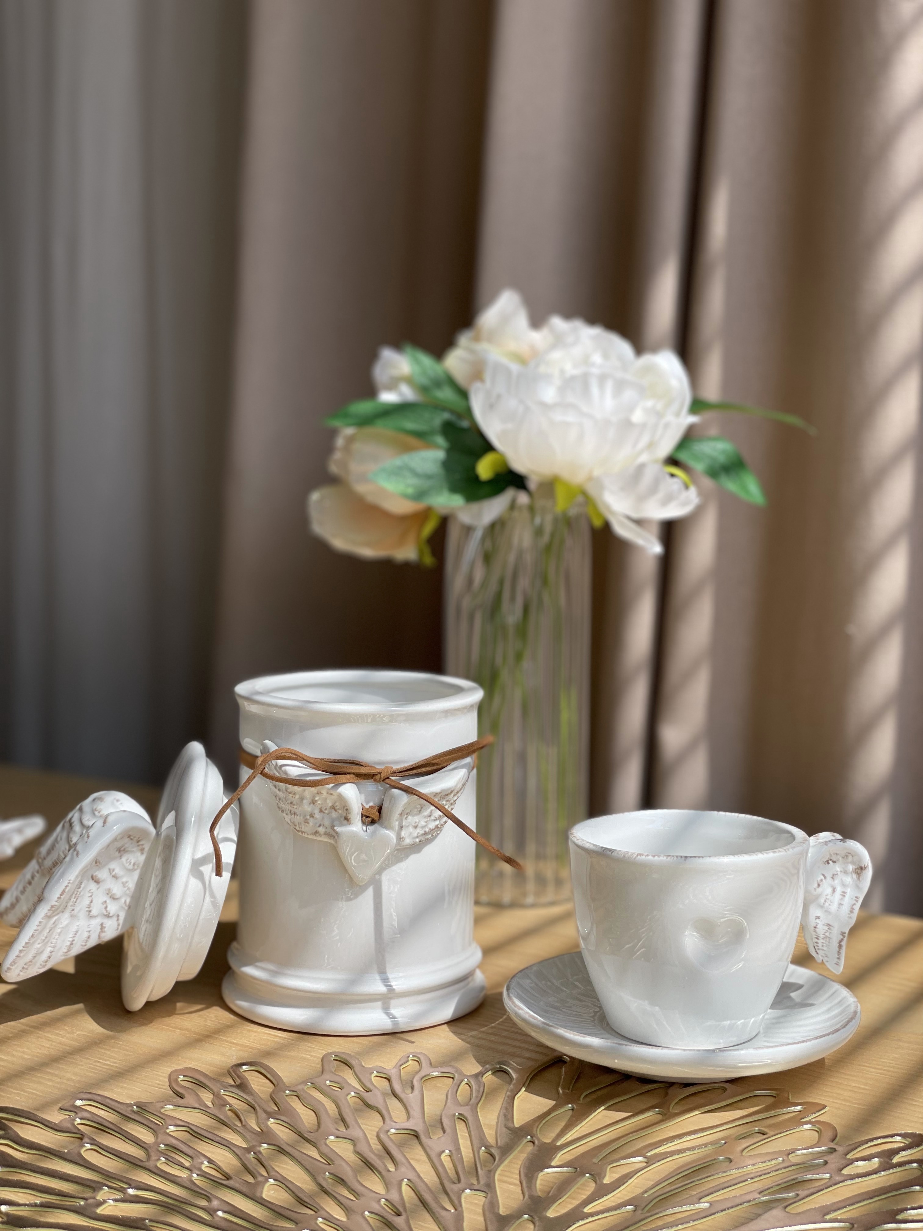 Кава – невід'ємна частина ритуалу сучасної людини. Чашка зі блюдцем «Крила» додає чарівництва та безтурботності у повсякденну рутину. Аромат і смак напою приносить ще більше задоволення завдяки білій кераміці. Чашка з декоративною та зручною ручкою забезпечує надійне захоплення. Посуд на блюдце виглядає ошатно та елегантно для вітання гостей за чашкою кави.