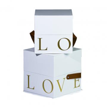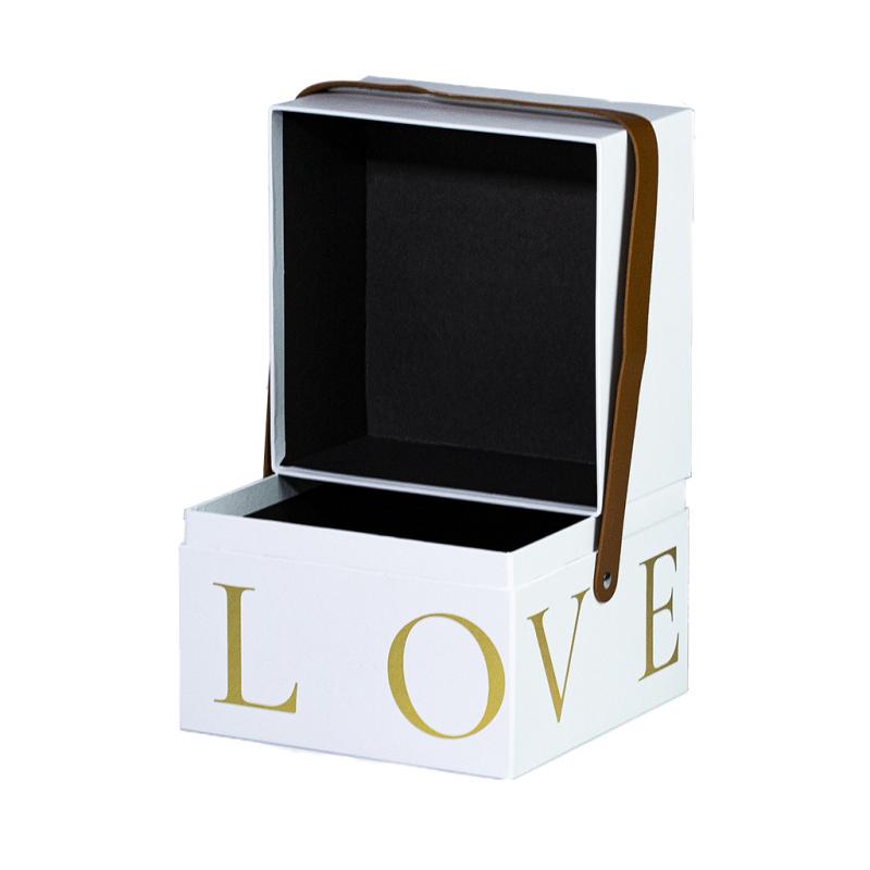 Опис Коробка подарункова LOVE куб білий з шкіряною ручкою L:18,5x19cm