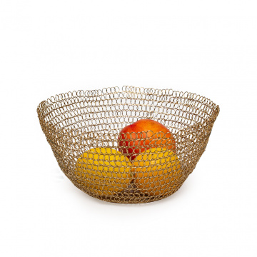 Кольчуга з металевих кілець рухлива і змінює форму кошика. Зручно використовувати як блюдо для великих фруктів: яблука, банани, ананас, груші. Замінює органайзер для зберігання побутових предметів на видному місці. Кошик зовнішнім виглядом чепурить інтер'єр кухні, їдальні, вітальні.