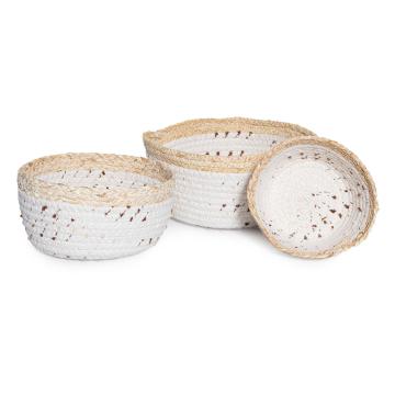 Серія плетених кошиків з натуральних матеріалів представлена в трьох розмірах: S, M, L. Згрупуйте вироби в чудову комбінацію на видному місці. Плетені аксесуари виглядають свіжо в інтер'єрі кухні, ванної кімнати, вітальні, балкона. М'яка бавовна добре згинається і не займає багато місця при зберіганні. Кошики рекомендується прати у делікатному режимі.