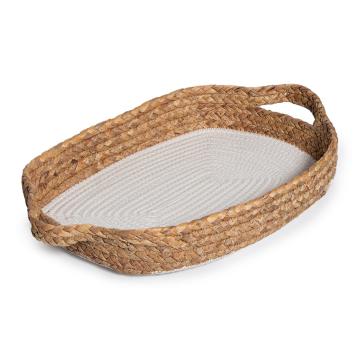Опис Кошик Скандинавський з бавовняної мотузки із солом'яним бортом із ручками 41х32х7см