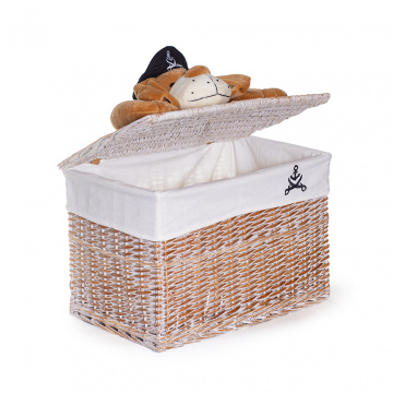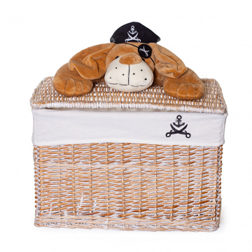 Деталі в дитячому інтер'єрі пов'язані з іграми, творчістю і душевним комфортом. Кошик з кришкою «Собака-пірат» - необхідний аксесуар з перших років життя дитини. У плетеному виробі дбайливо зберігаються іграшки, текстиль та інші приналежності. Згодом малюк привчитися підтримувати порядок в кімнаті завдяки привабливому органайзеру. Плетений кошик досить легка і практична в щоденному побуті. Аксесуар акуратно впишеться у вільний куточок біля шафи, ліжка, столу, уздовж стіни.