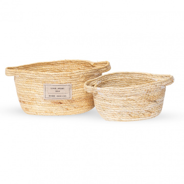 Солом'яні кошики сплетені з натурального і екологічно чистого матеріалу маїсу. Вироби можна придбати в розмірі М і S. Колекція плетених кошиків для дому представлена у великому асортименті різноманітних форм і моделей.