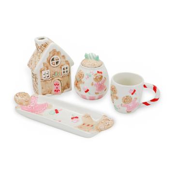 Кружка идеально сочетается с другими предметами коллекции — керамическим блюдом, банкой для печенья и подсвечником, оформленными в том же праздничном стиле. Вместе они создают гармоничный и радостный новогодний сервиз.