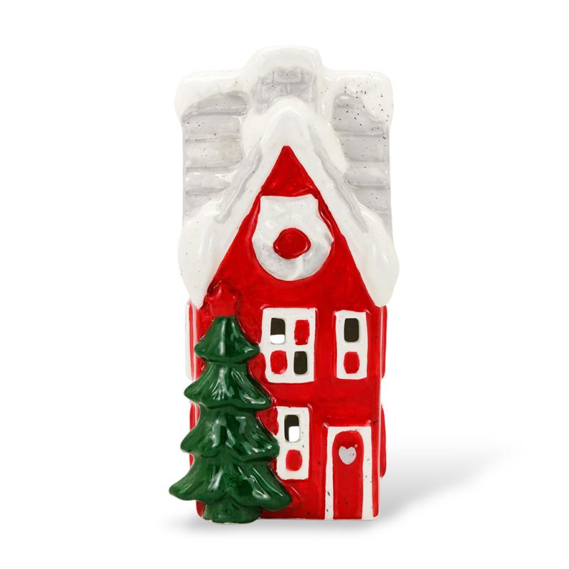Опис Декоративний LED нічник кераміка Будиночок з ялинкою червоний 23,5х9,3х11,3см