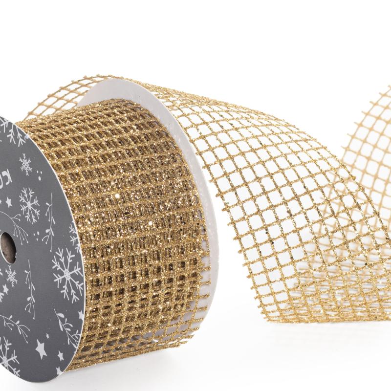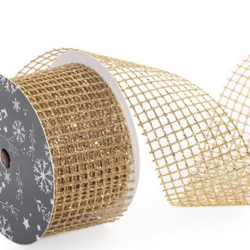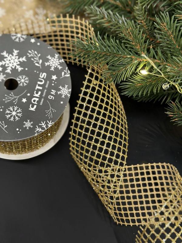 Опис Стрічка новорічна декоративна велика сіточка золото 6,3 х 9 м