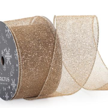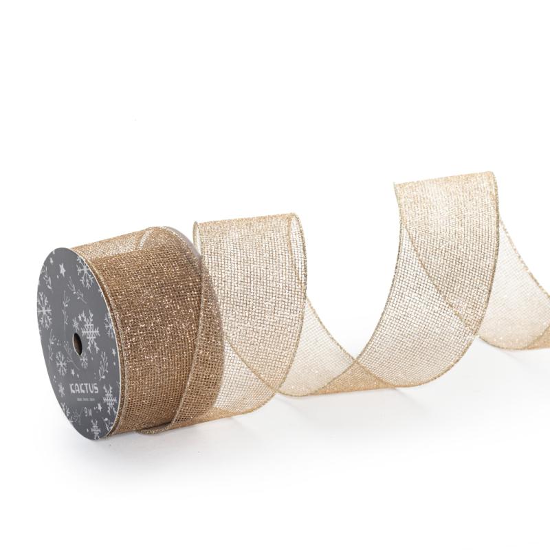 Опис Стрічка новорічна декоративна дрібна сіточка золото 6,3 х 9,15 м