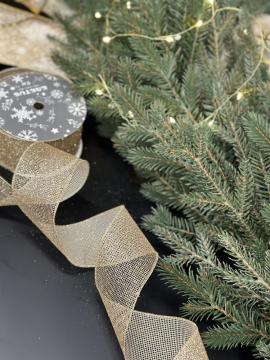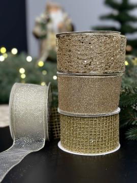 Ідеальним доповненням до вашого новорічного декору стане золотиста стрічка із чарівним блиском. Її дрібно сітчаста текстура і мерехтливий ефект привернуть увагу і створять атмосферу чаклунства в будь-якому куточку вашого будинку. Золота новорічна стрічка ідеально підійде для прикраси ялинки, вінків, подарунків чи інтер'єру завдяки своїй здатності тримати форму та додавати вишуканості будь-якій прикрасі.