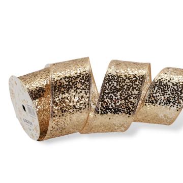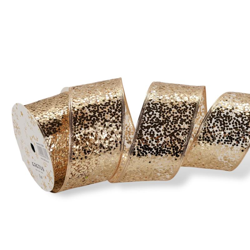 Стрічка новорічна декоративна паєтки золото 6,3 х 9,15 м