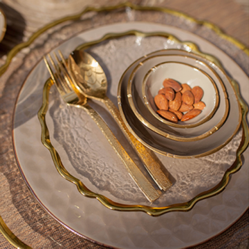 У гостинної господині є десертні ложки для подачі мусу, суфле і морозива. Відполірований до блиску золотий прибор грає на руку святковій атмосфері. Привабливість і добротна якість виробу значима для урочистих подій, весілля або ювілею.