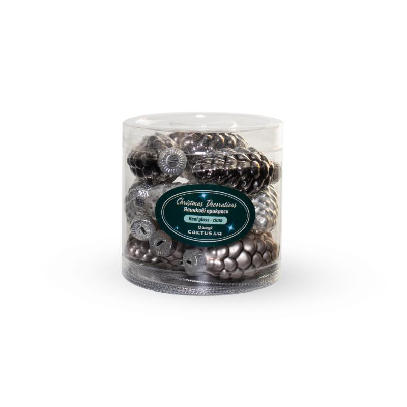 Набір ялинкових іграшок Шишки 5см темно-сірий мікс 12шт