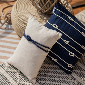 Диванна подушечка лаконічно прикрасить квартиру холостяка або дачу з романтичним характером. Напірник з вузликом тішить погляд на видному місці у вітальні або спальні. Розкладіть подушки в морському стилі з боків м'якого дивана або крісла. Пастельний відтінок напірника співзвучний з подушками темно синього кольору. Ви створите прекрасний настрій для дитячої кімнати хлопчика, якщо додасте текстиль з морським характером.