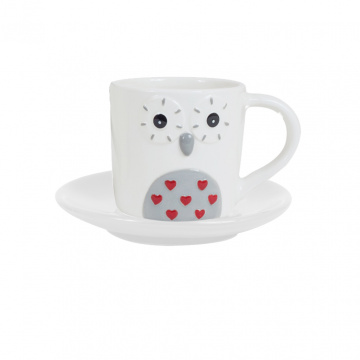 Опис Чашка кавова з блюдцем Сова біла 10.4 * 7.3 * 6 см