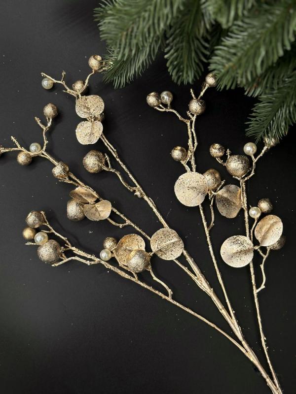 Декоративна Гілочка з ягодами золота 68см у магазині Кактус по кращій ціні. Великий асортимент товарів у категорії Ветки новогодние з доставкою по Україні.
