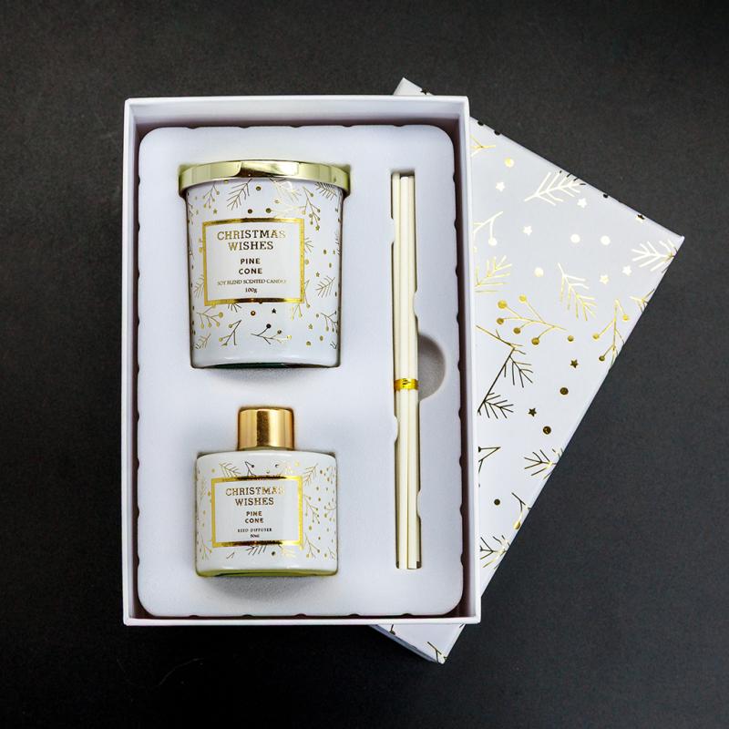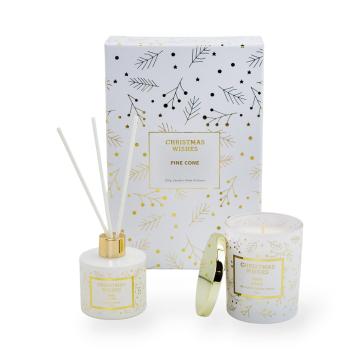 Опис Набір Pine cone білий свічка 100гр та дифузор 50гр
