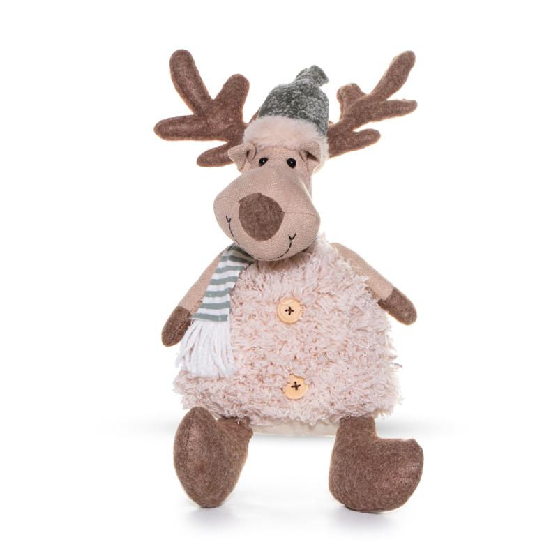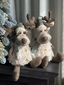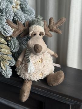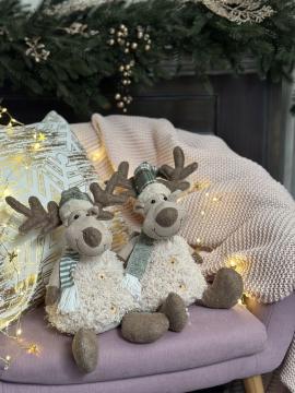 Зберіть навколо себе атмосферу свята з нашим чудовим оленем у зеленій шапочці! У м'якій кремовій шубці, картатій шапочці і зеленому шарфи олень буде не тільки чудовим елементом декору, але і корисним аксесуаром - в іграшці знаходиться обтяжувач, що дозволяє використовувати її як дверний стоппер.