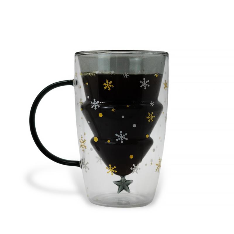 НГ Скляна чашка з подвійним дном Ялинка зелена 300 мл