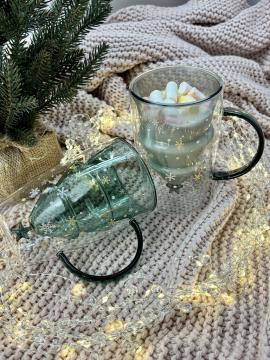 НГ Скляна чашка з подвійним дном Ялинка димчаста 300 мл