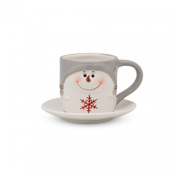 Опис НР Чашка з блюдцем Сніговик сір-білий 10.6*7.7*6.9