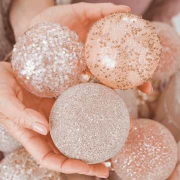 Колірна палітра ялинкових куль підібрана в тренді новинок. Кораловий, Шампань і пляшковий відтінки затребувані для прикраси святкових інтер'єрів.