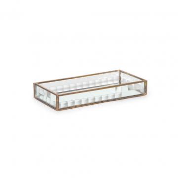 Піднос скляний із дзеркальним дном античне золотом скло латунь 25х13х3.5см