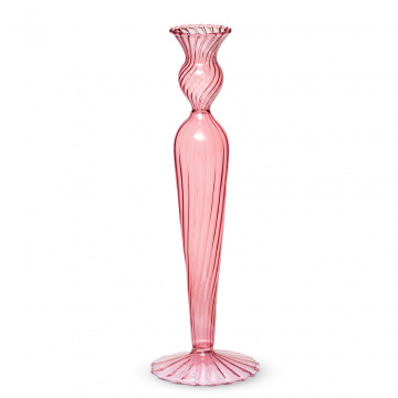 Серія скляних свічників виготовлена ручним методом продувки і виділяється високою якістю. Ефект кручення виконаний у визнаному класичному стилі. Трендова колірна гама складається з рожевого, блакитного і помаранчевих відтінків, які чудово гармонують в єдиній композиції.