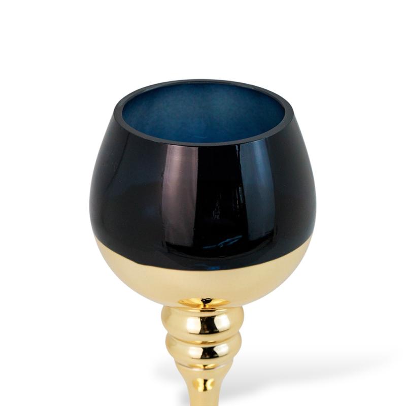 Свічник скло Golden Eclipse синій із золотом L 30 см