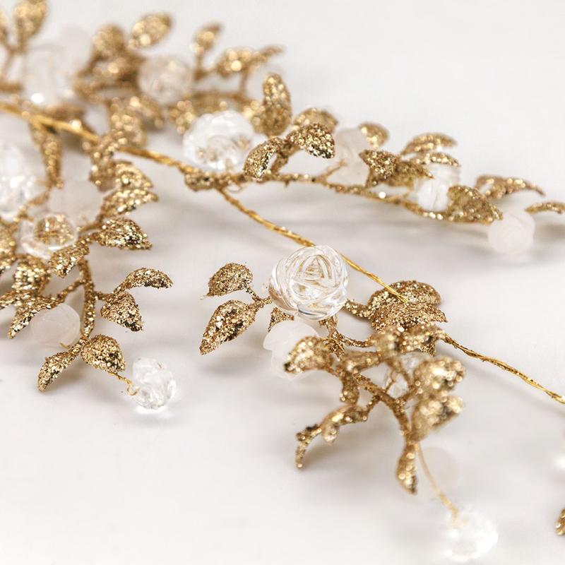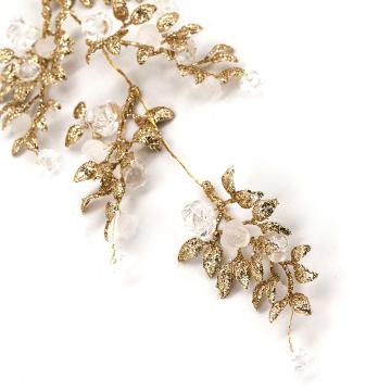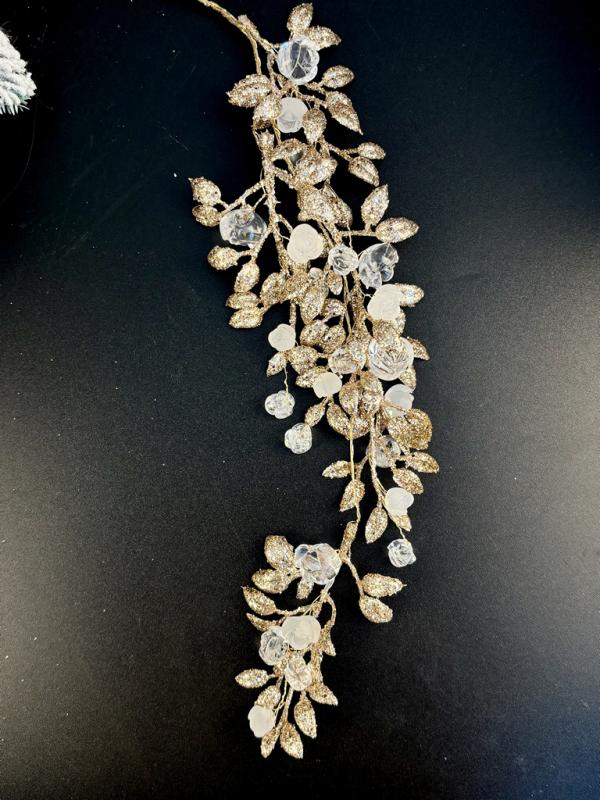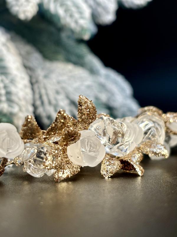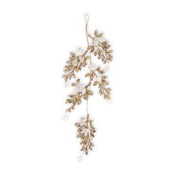 Опис Підвіска на ялинку Гілка з квітами та кристалами золото 38см