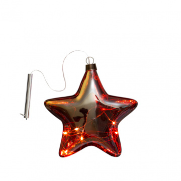 Декоративний Led світильник у формі Зорі, з дутого скла, червоного кольору, 16 див.