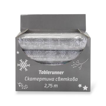 Новорічна скатертина раннер Сніжинки срібло 28х2,75 м