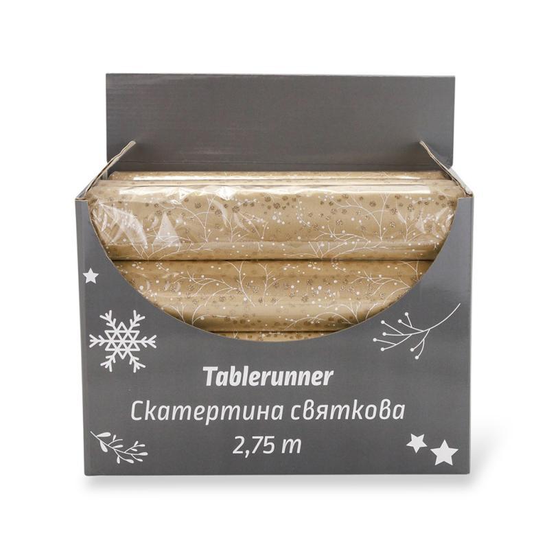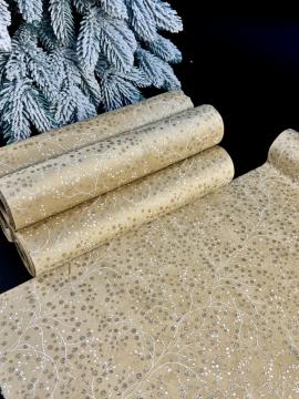 Новорічна скатертина раннер Сніжинки золото 28х2,75 м