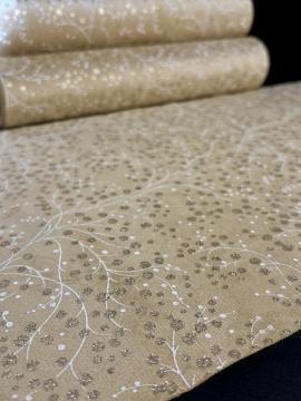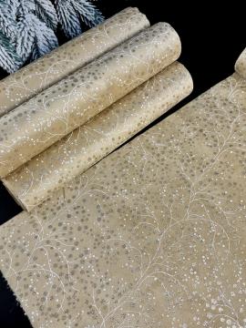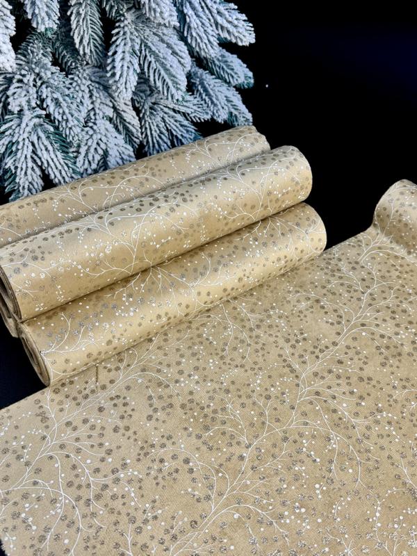 Доріжка на стіл «Гілочка» у вельветі шампань нагадує витончений візерунок морозного ранку, коли на вікнах проступають кришталеві лінії інею. Сяючий відтінок та витончений орнамент роблять цей настільний раннер елегантним акцентом, який надає сервіруванню шляхетності та затишку. Вузька доріжка на стіл наче створена для того, щоб підкреслити красу зимових вечорів та урочистих моментів.