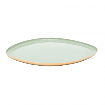 Як деталь декору, мініатюрний піднос вносить в інтер'єр настрій модних тенденцій. Блискуча емаль кольору оливки підкреслює особливу елегантність вироби. Зберігання жіночих прикрас на ефектному аксесуар зручно і в спальні на туалетному столику. Будь-яка біжутерія на стильному підносі створює оптимістичний настрій благополуччя і надії поповнити асортимент коштовностей.