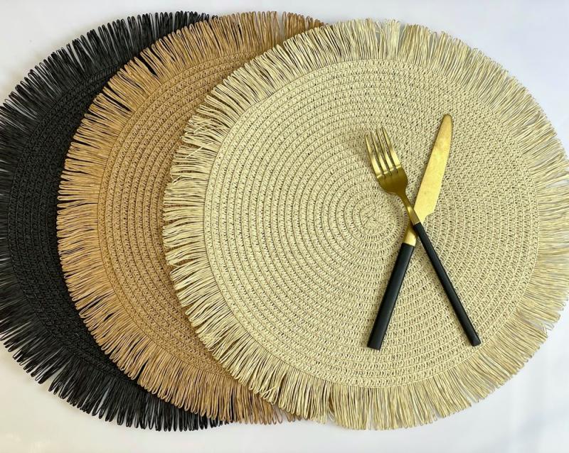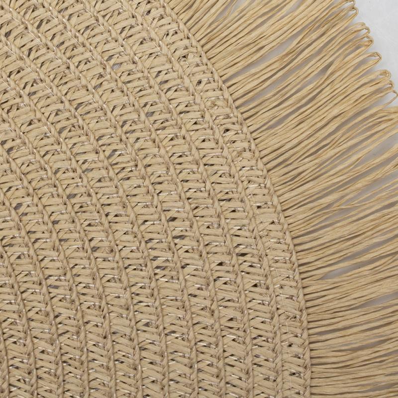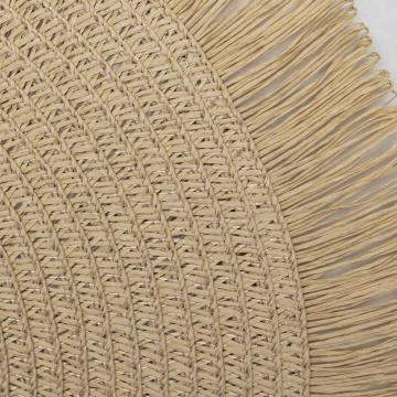 Бежева кругла циновка з бахромою під тарілку ідеально доповнить сервірування столу. Циновка під тарілку - простий аксесуар, що вражає своїм дизайном. Виконана із соломки, циновка не лише приваблює своїм зовнішнім виглядом, а й надає вашому столу теплоти та затишку. Бежевий колір соломки надає циновці природного та елегантного вигляду, який легко поєднується з будь-яким інтер'єром.