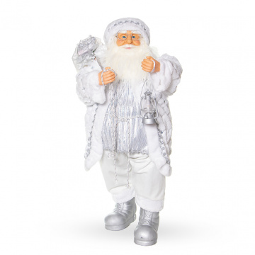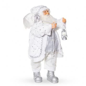 Опис Санта-Клаус біло-срібний з мішком та ліхтариком 83х38х30