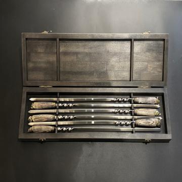 Шампура з декоративною ручкою Вовк у буковому кейсі 6 шт