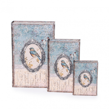 Комплект шкатулок-фоліантів Bird складається з трьох розмірів: L, M, S.