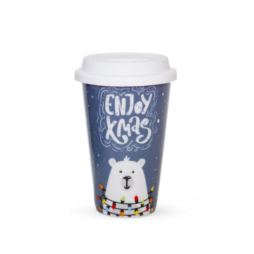 Імбирне печиво, карамель, сніжинки - обов'язкові атрибути новорічного настрою. Фарфоровий стакан з кришкою надасть практичну послугу для прогулянок і поїздок. Закрита ємність зберігає тепло і безпечне зберігання гарячих напоїв. Сама присутність склянки на столі змінює навколо себе простір. Яскравий дизайн з барвистим принтом заряджає ауру святковим веселощами.