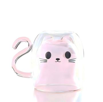 Опис Скляна чашка з подвійним дном Кішка рожева 300 мл