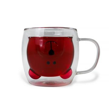 Скляна чашка з подвійним дном Ведмідь рожевий 250 мл