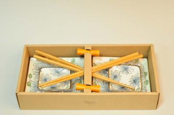 Суши набор на 2 персоны Незабудки Комплектация: - тарелка: 2 шт.; - блюдце для соуса: 2 шт.; - набор палочек: 2 шт.; - подставка для палочек: 2 шт. Материал: керамика. Цвет: белый, с элементами голубого.